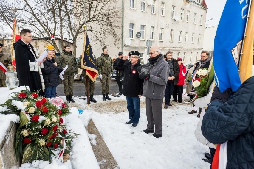 Delegacja ZOR: płk Eugeniusz Michał Andrzejewski, i Henryk Nazarewicz, w głębi Mirosław Kozłowicz, zastępca prezydenta Bydgoszczy (z wieńcem) i radny Janusz Czwojda.
