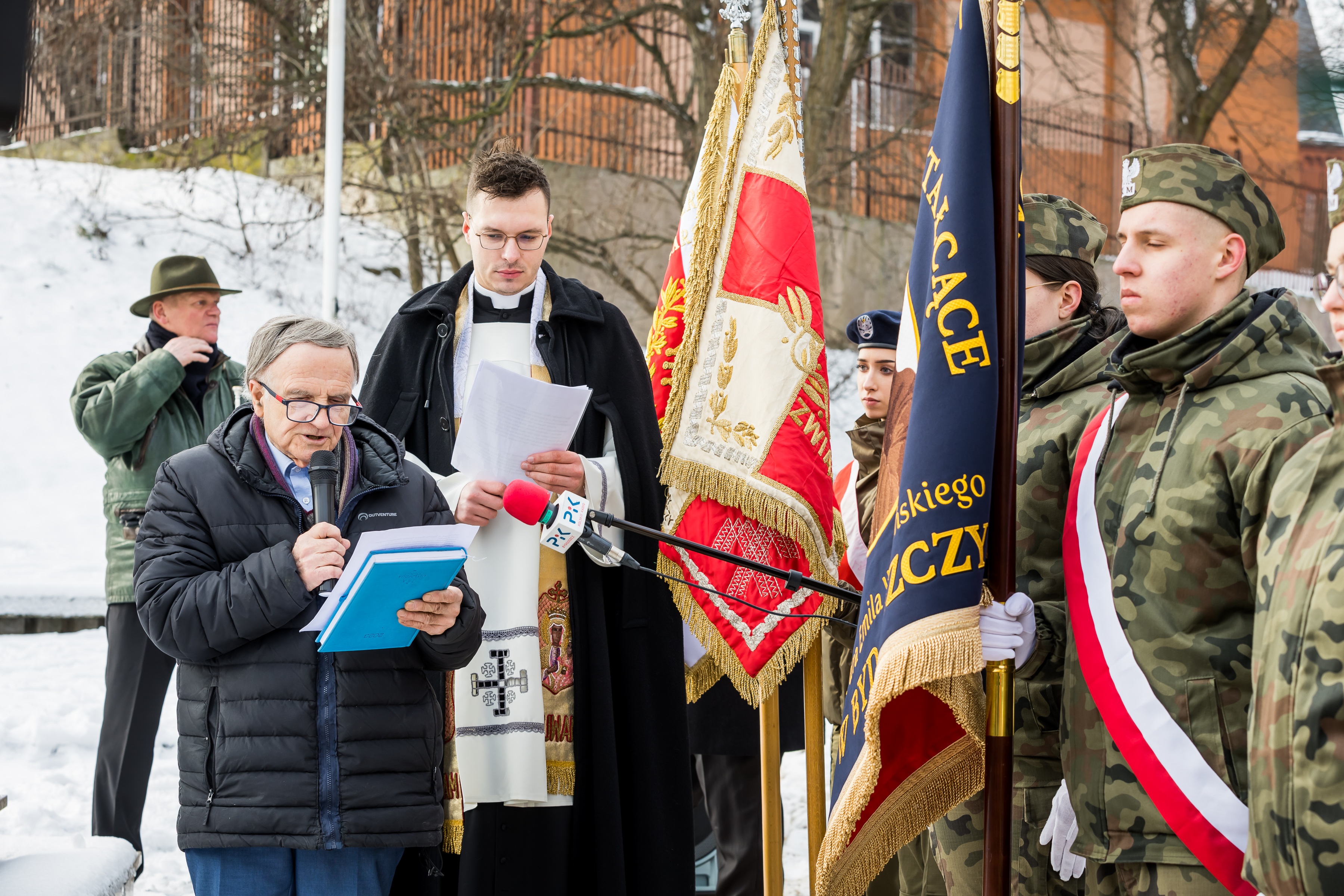 Serdecznie witam także poczty sztandarowe: wystawione przez Zarząd Wojewódzki Związku Oficerów Rezerwy RP im. Marszałka Józefa Piłsudskiego oraz Zarządu Wojewódzkiego Związku Inwalidów Wojennych RP. Są to najstarsze organizacje kombatanckie w Polsce (ZIW liczy 104 lata, a ZOR w czerwcu br. 100 lat), przedstawiciele tych 2 organizacji składać będą kwiaty pod pomnikiem NSPJ, także poczty Miasta Bydgoszcz, Towarzystwa Miłośników Miasta Bydgoszczy, Zespołu Szkół Mechanicznych nr 1 z nauczycielem Grzegorzem Kosiło. Klub Inteligencji Katolickiej reprezentuje Tadeusz Furgał, 16 Żeglarską Drużynę Harcerską hm Henryk Konarski.
